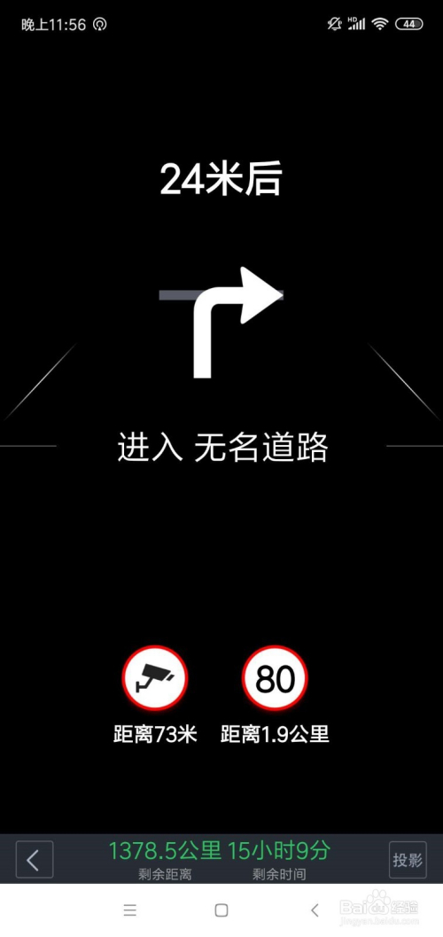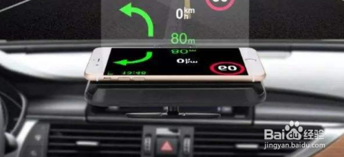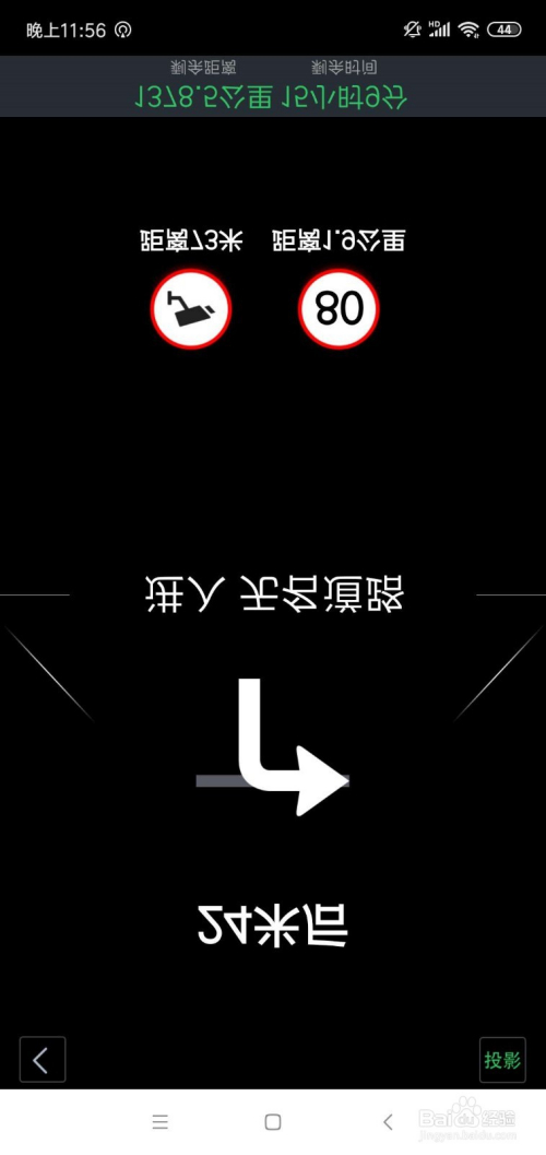 点击一下上面的“投影”,页面呈现180度扭转,如许我们就无需把手机扭转也能看到正视图了,将手机放在前挡风玻璃前即可。