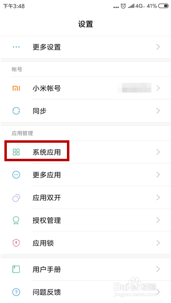 在手机的设置功能中找到【系统应用】并点击打开系统应用界面。