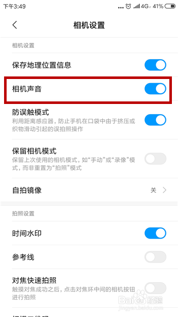 如许也会打开相机设置界面,封闭相机声音即可。