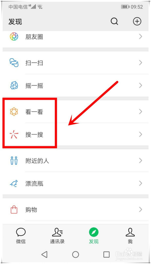 打开微信的“发现”页,我们可以看到“摇一摇”、“看一看”、“搜一搜”、“四周的人”……等等这类选项。其实,这些选项,若是我们不需要,可以将其它的一些选项埋没起来。