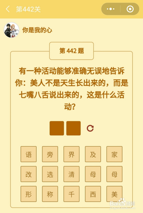 第442关谜底是选美。