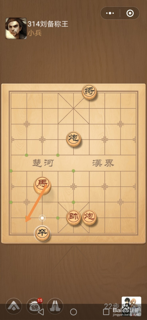 第二十二步馬移动到下图中箭头标注的位置。