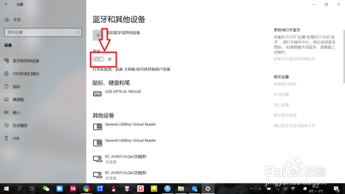 点击“蓝牙和其他设备”,将“蓝牙”设置为“开”。