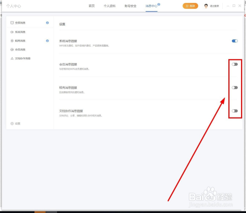 当然若是你的工作情况改变,需要文档协作等某类动静提醒,我们还可以单击打开该功能