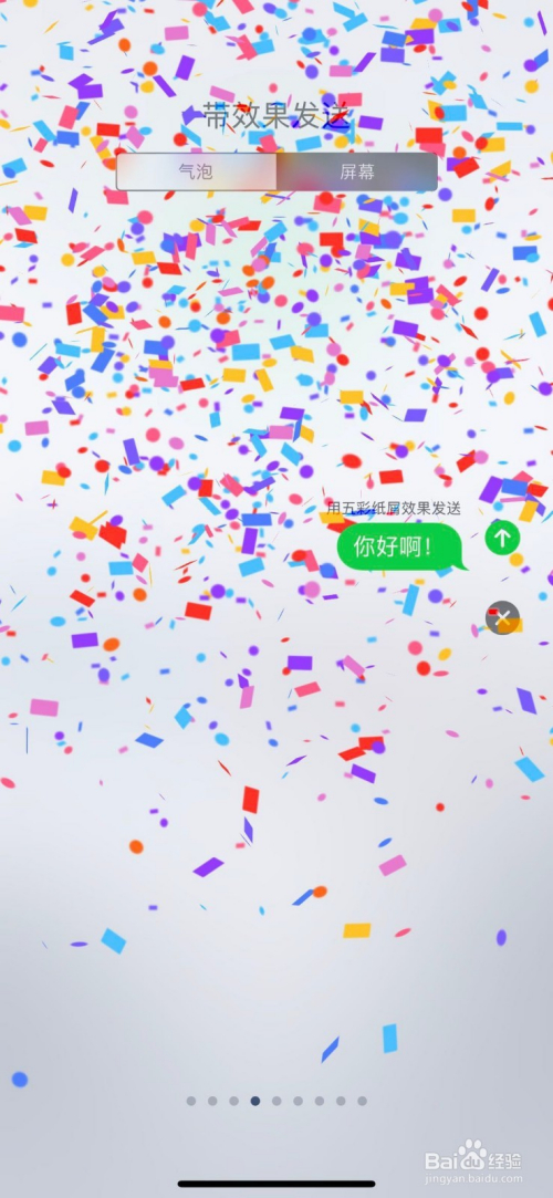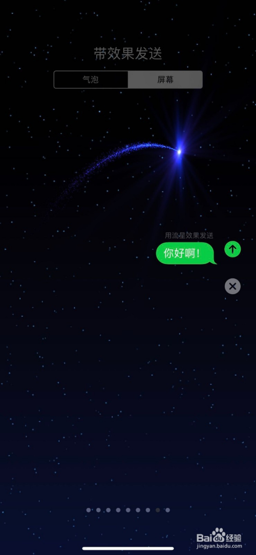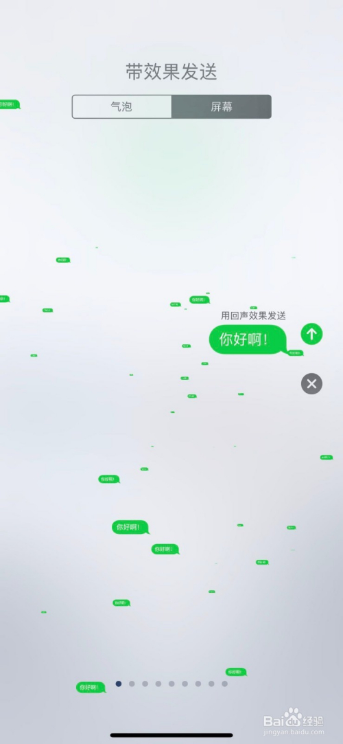 长按发送短信的箭头,直到呈现特效设置界面。设置好特效今后,按小箭头发送,按小X打消。