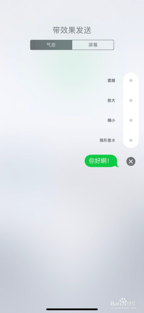 气泡结果共有4种:震撼、放大、缩小、隐形墨水,点击对应的小圆点就可以了。