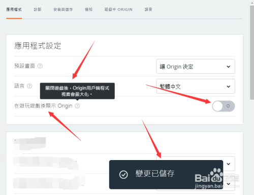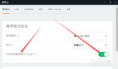 之后我们点击【在遊玩遊戲後顯示 Origin】后边的开关