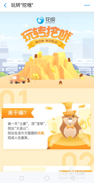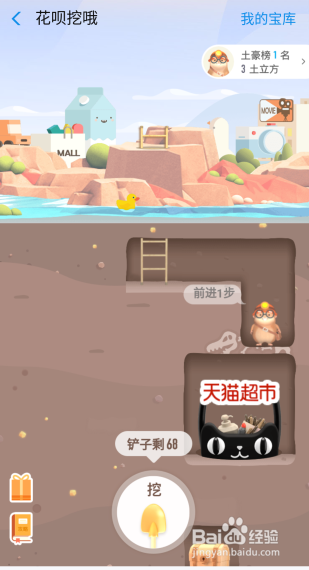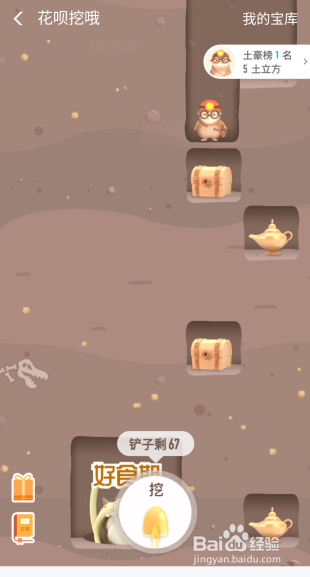 蚂蚁花呗里有个小游戏挖哦,挖出宝“呗”,挖出糊口方方面面的优惠。喜好的可以玩一玩哦。下面就看如何玩转挖哦。