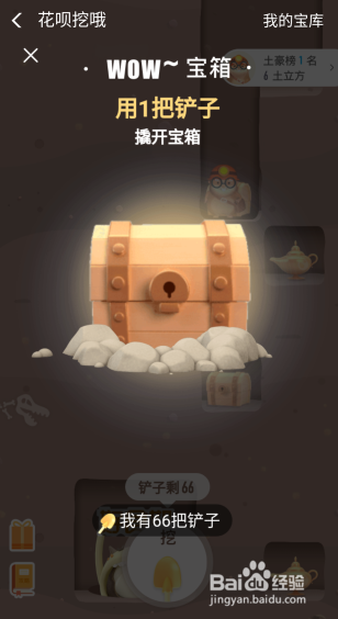 继续挖,挖到宝箱啦!打开宝箱也需要一把铲子。
