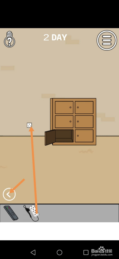 获得插排后,将插排拖动到墙上插座处,然后点击标的目的左箭头进入左边的房间。
