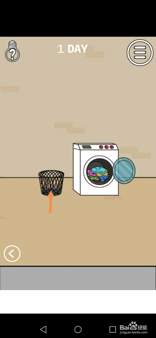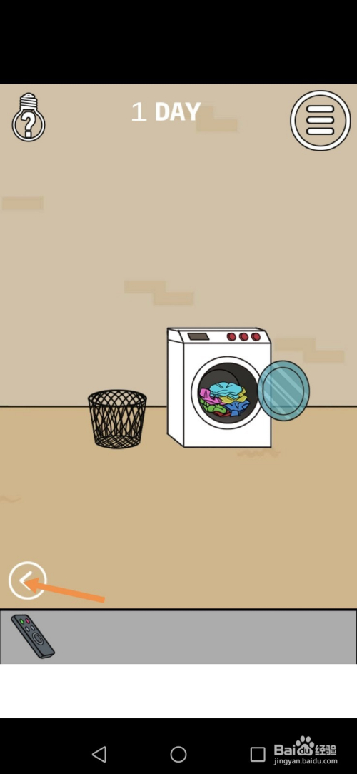 在右边房间里,点击桶里所有衣物,然后点击桶里的遥控器。