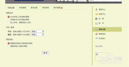 点击博客设置,点击权限设置。