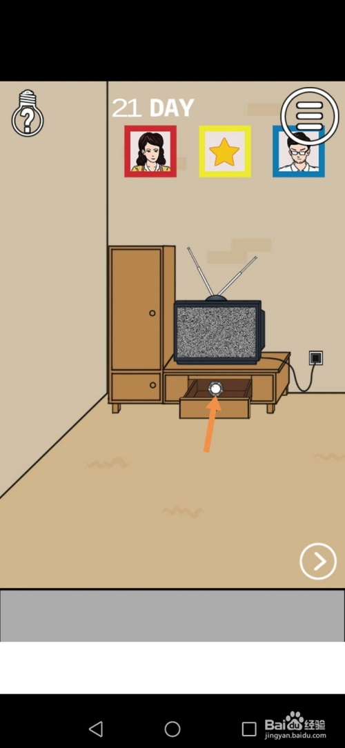 获得按钮开关后,点击标的目的右箭头进入右边的房间。