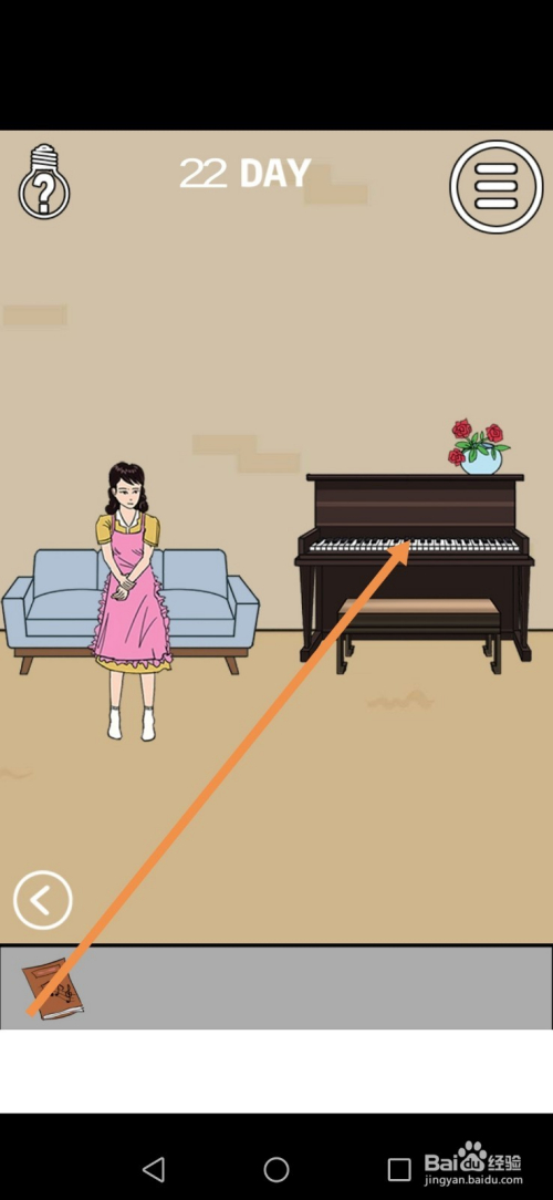 在右边房间里,将书拖动到钢琴上,然后点击钢琴。