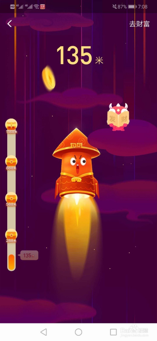 点击小火箭下边的“起飞”按钮,小编飞了135米。