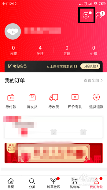 点击之后会打开网易考拉的小我本家儿页,然后点击右上角的【设置】。