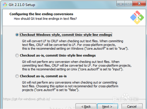 设置装备摆设行竣事标识表记标帜,连结默认“Checkout Windows-style, commit Unix-style line endings”,如下图所示: