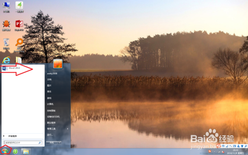 点击使命栏的起头按钮,在弹出信息中,选择【word 2013】,如图。
