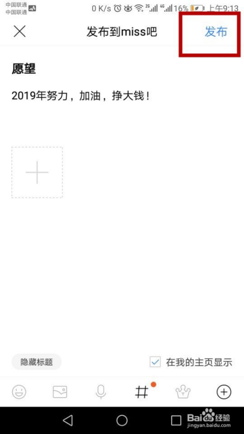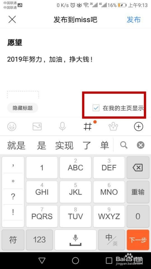 第六,写完之后,点击右上侧的发布,低端要点击在我的本家儿页显示,本身可以随时看到。