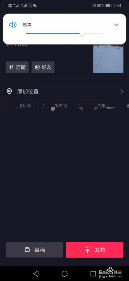 然后输入发布视频的内容、本家儿题、选择地址,点击下方的“发布”按钮,就可以了。