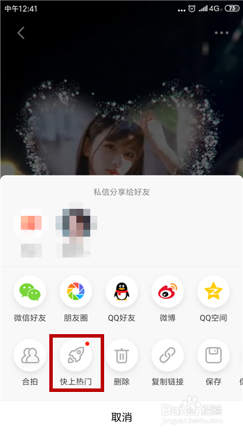 点击之后会打开辟布视频的界面,点击想要利用快上热点的视频。