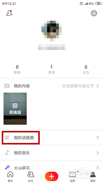 接下来在火山小视频的小我本家儿页中点击【我的话题圈】。