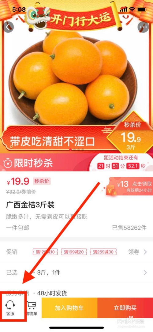 第三步:进入产物详情页之后,点击左下角“客服”字样进入。