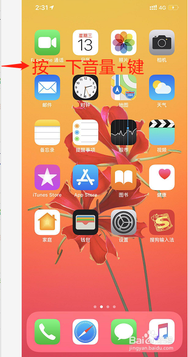 先按一下手机左侧的音量+键,松开;
