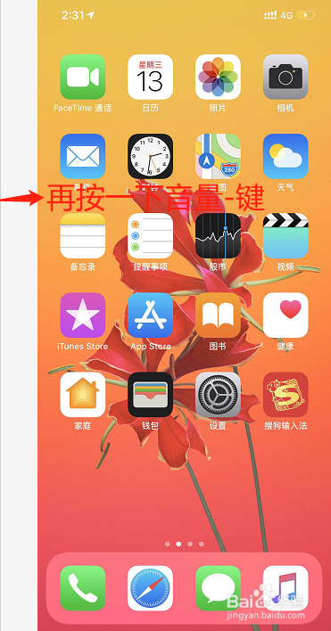 再按一下音量-键,松开;