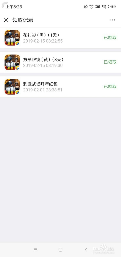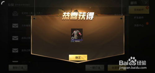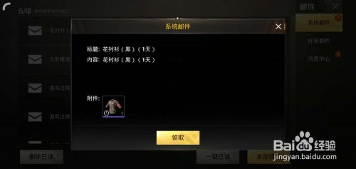 点击领取记实可以查看领取的物品,回到游戏界面,我们点击“邮箱”图标,点击道具领取;