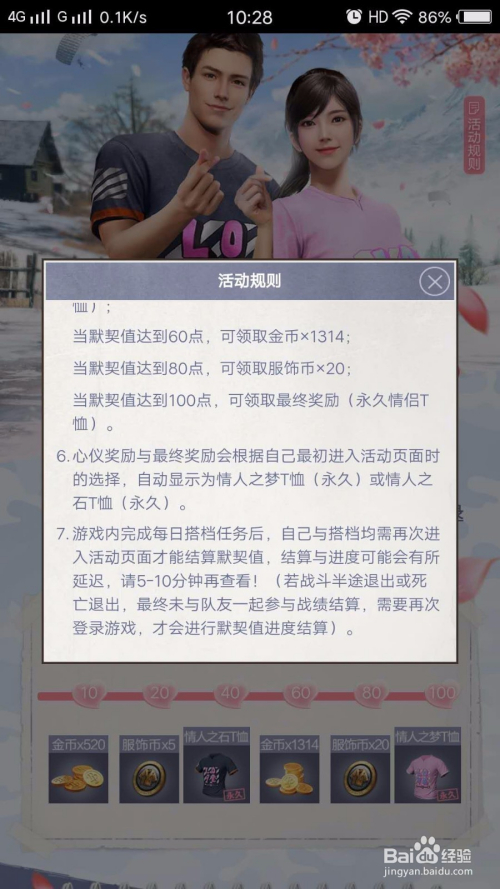 进入游戏,可以看到有“承情侣T恤”的海报