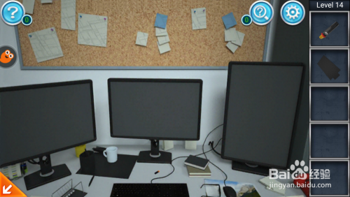 点击办公桌,打开下面的抽屉掏出里面的对讲机配件。再点击三个显示器桌面,将电池拾取起来。