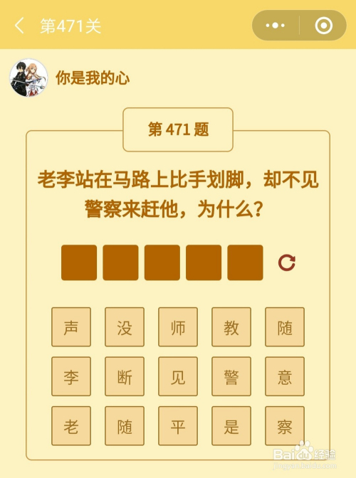 第471关谜底是老李是差人。
