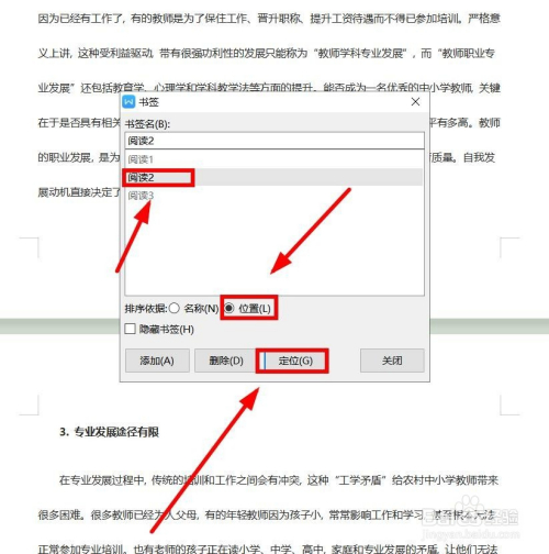 当然,我们也可以成立多个书签,好比书签名字别离为“阅读2”“阅读3”