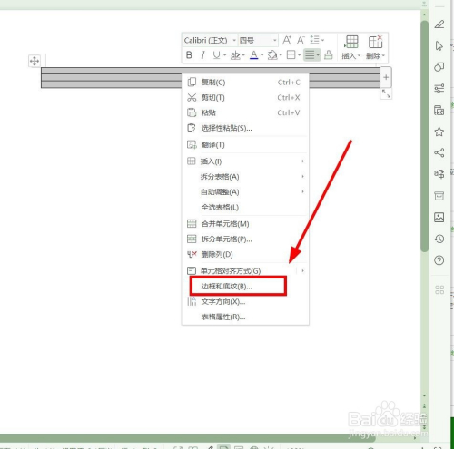 全选表格,鼠标右键,点击“边框和底纹”