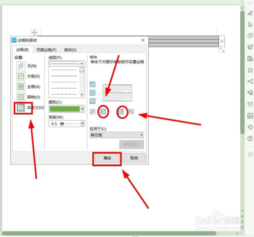 “设置”选择“自界说”。在右边“预览”窗口,别离单击摆布两个边框,打消它们,操作完当作,单击“确定”