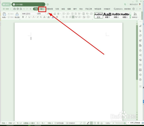新建一个WPS文档,然后点击“插入”