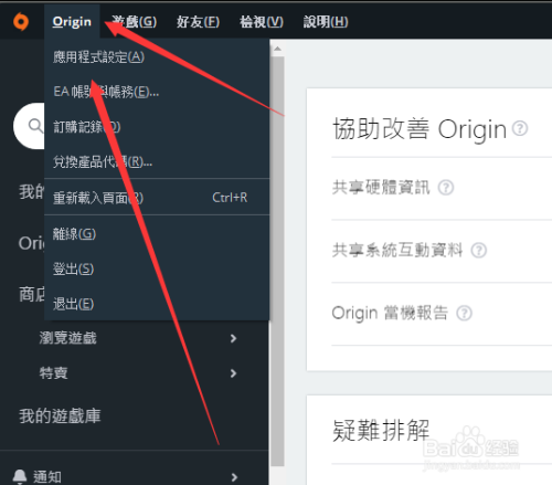 打开origin后,鼠标点击左上角的【origin】再点击【应用程式设定】