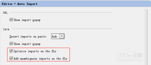 主动 import 类型,打开 Settings->Editor->Auto Import,勾上“Optimize imports on the fly” 和“Add unambiguous imports on the fly”,如下图所示: