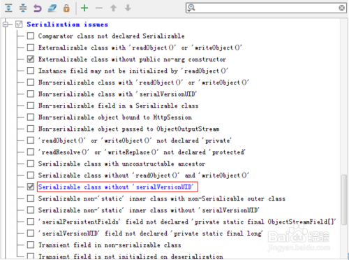 开启序列化 serialVersionUID 检测,打开 Settings->Inspections,如下图所示: