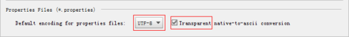 点窜属性资本文件(.properties)的编码,打开 Settings->File Encoding,设置 Properties File 的编码为 UTF-8,并勾上“Transparent native-to-ascii conversion”,如下图所示:
