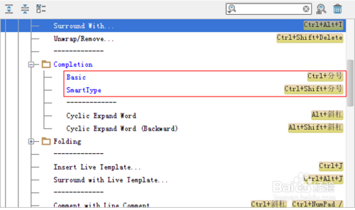 点窜代码提醒快捷键与输入法快捷键冲突的环境。打开 Settings-keymaps,睁开下拉列表 Main menu->Code->Completion,点窜 Basic 和 SmartType 快捷键为小我爱好,如下图所示: