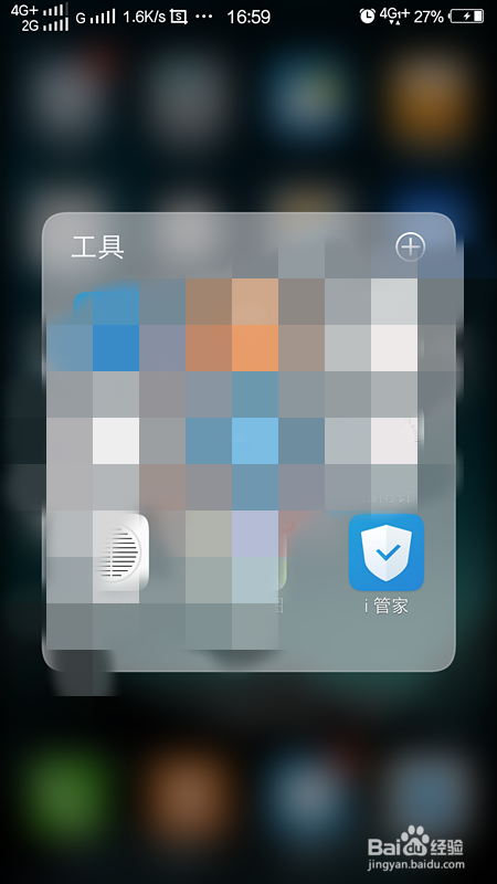 首先我们回到我们手机的桌面,找到我们手机自带的办理软件i管家,点击i管家,进入管家的界面。