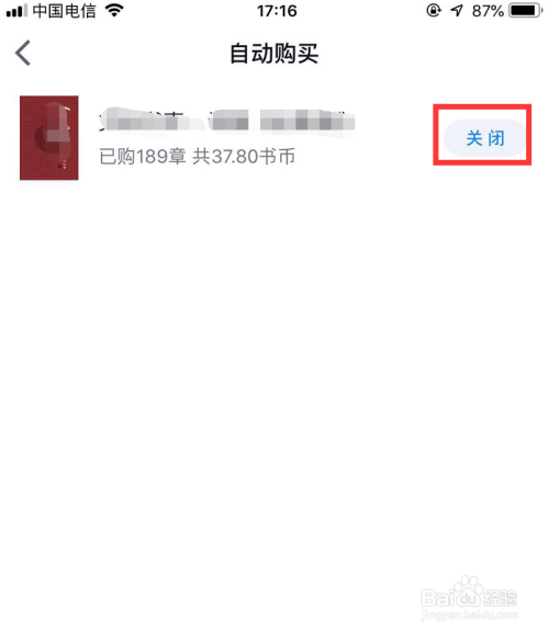 点击后就能在主动采办本家儿页下看到设置了主动采办章节的册本,点击册本右侧蓝色的【封闭】按钮,如图所示!