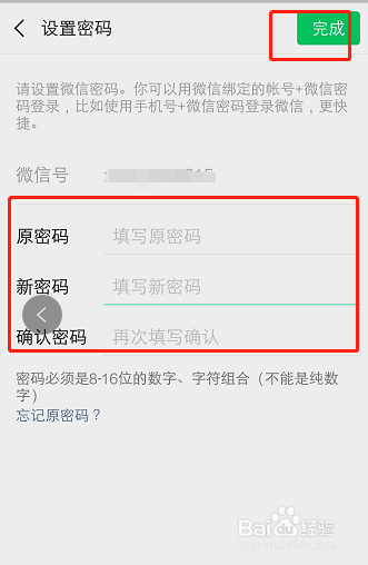 在点窜密码页面中,按照提醒输入新的密码,并点击完当作,即点窜当作功: