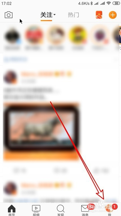 这时就会打开微博的软件本家儿界面,我们点击右下角的“我”选项卡。