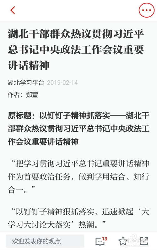 第一步:在需要保藏的文章界面右上角点击三个点的标识。