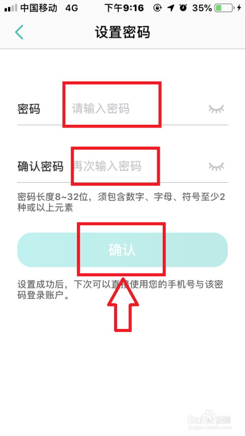 在密码设置页面,输入密码以及确认密码,最后点击“确定”即可。