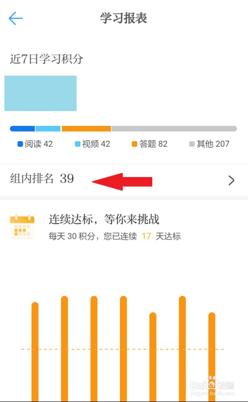 第四步:点击进入“组内排名”界面,会展示“近7日”和“总积分”两项。