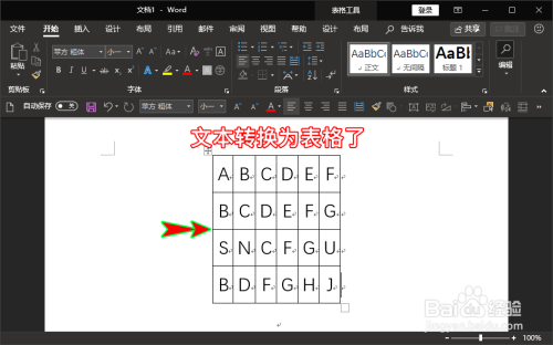 点击“确定”之后,我们就可以在word文档中看到我们之前选好的文本内容此刻就酿成了表格了。